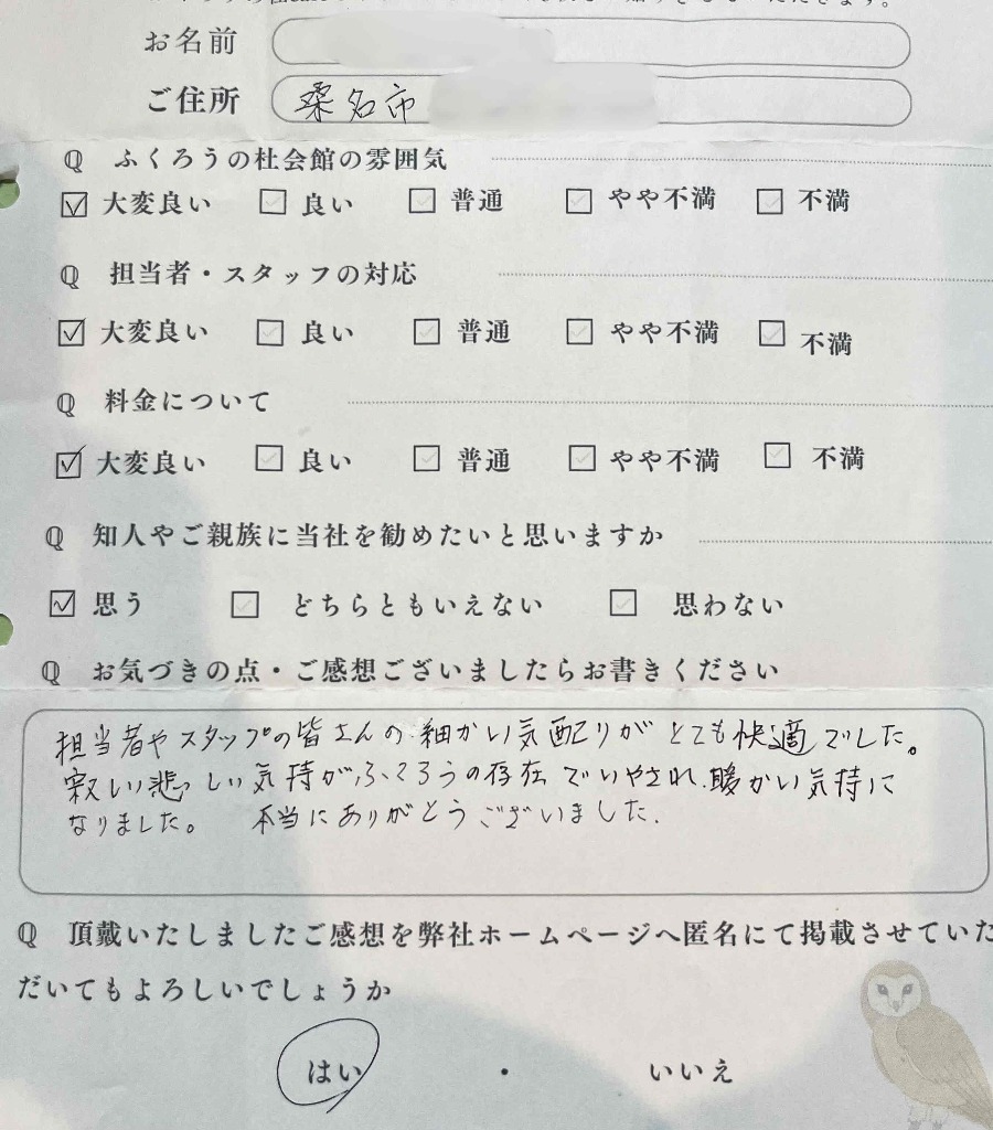 お客様の声(桑名市在住 ご利用式場:ふくろうの杜)