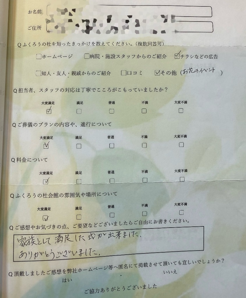 お客様の声(桑名市在住 ご利用式場:ふくろうの杜)