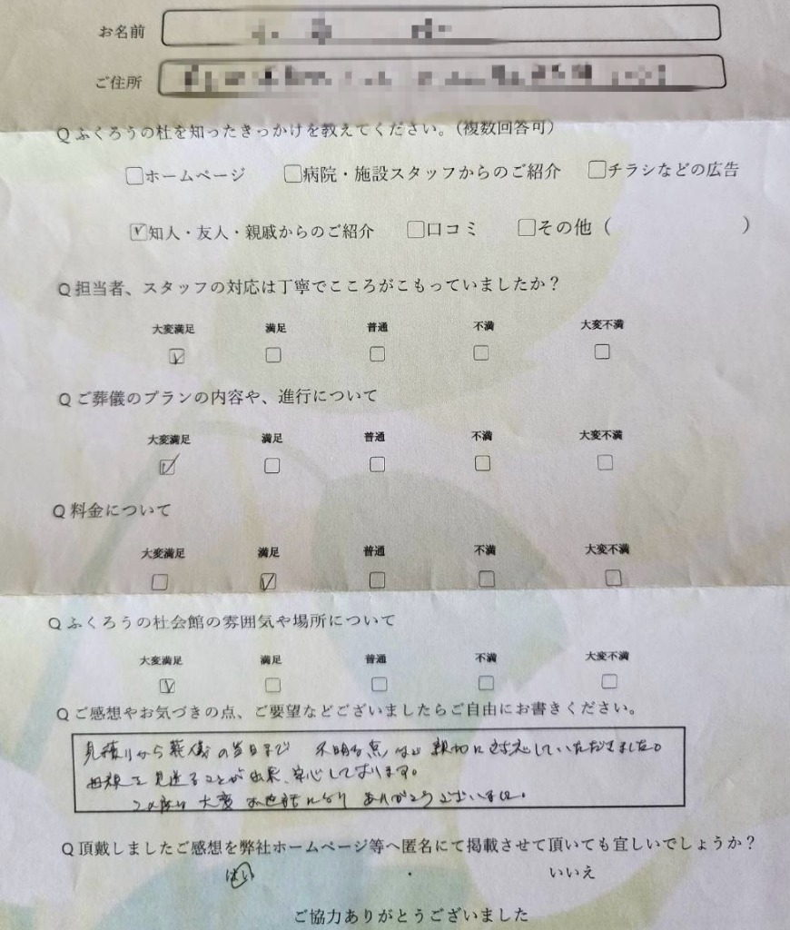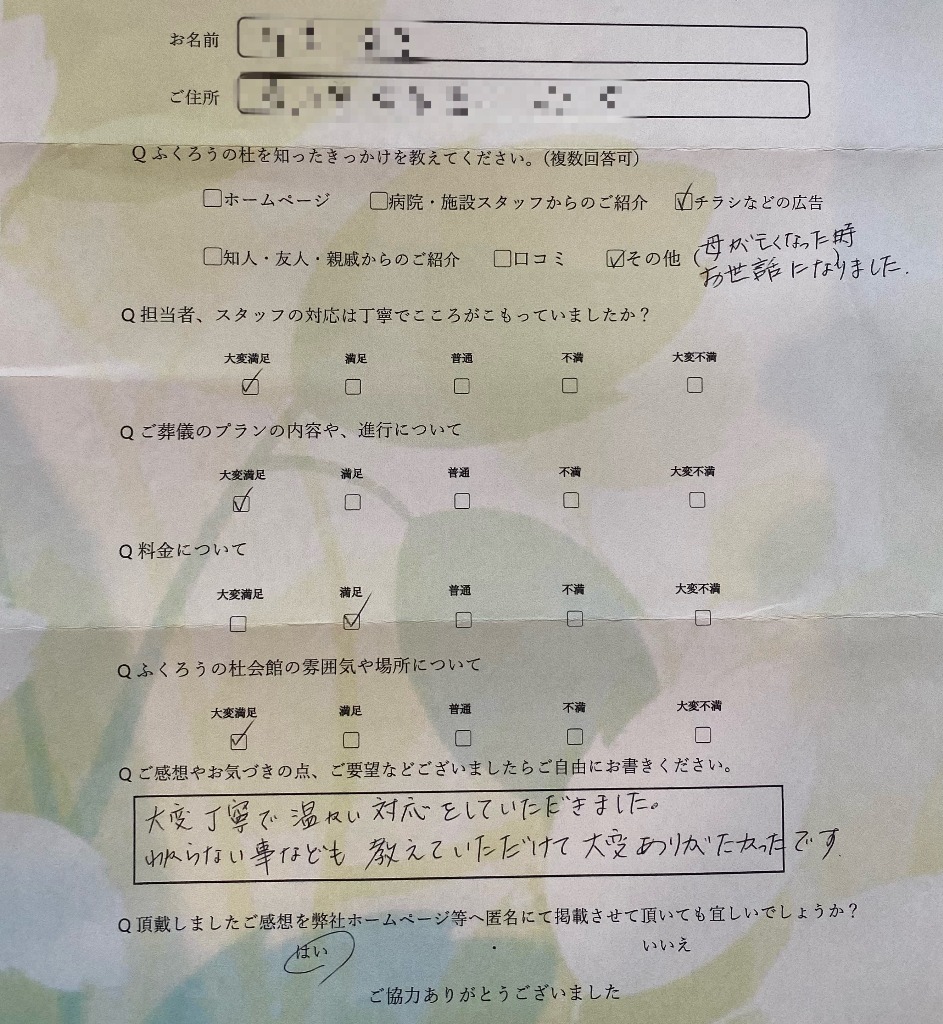お客様の声(桑名市在住 ご利用式場:ふくろうの杜)