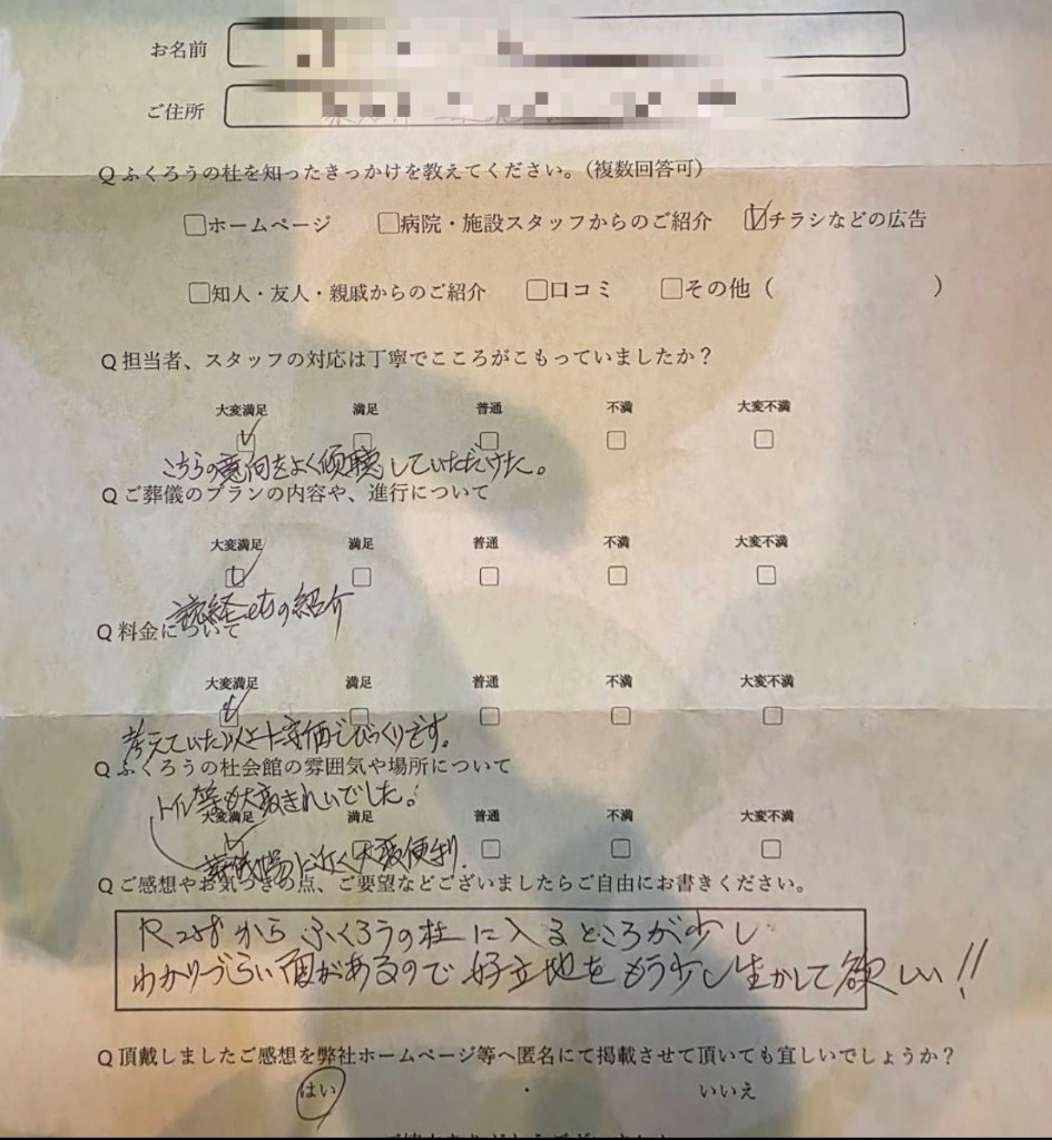お客様の声(桑名市在住 ご利用式場:ふくろうの杜)
