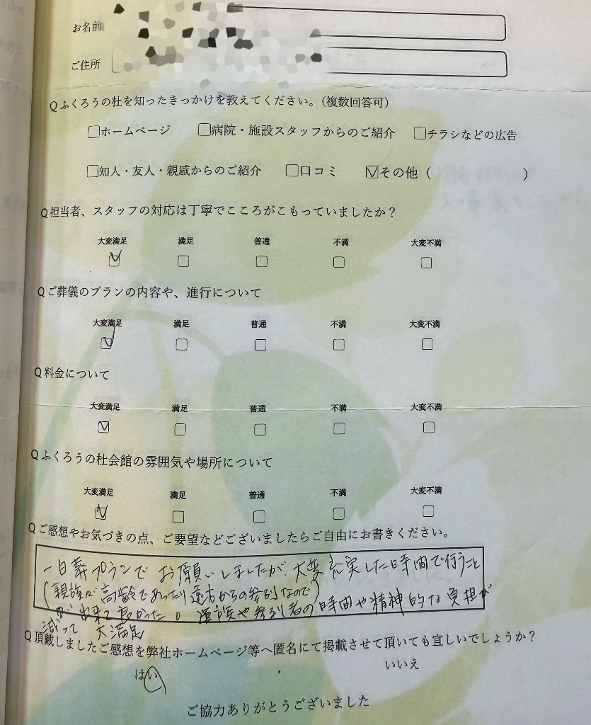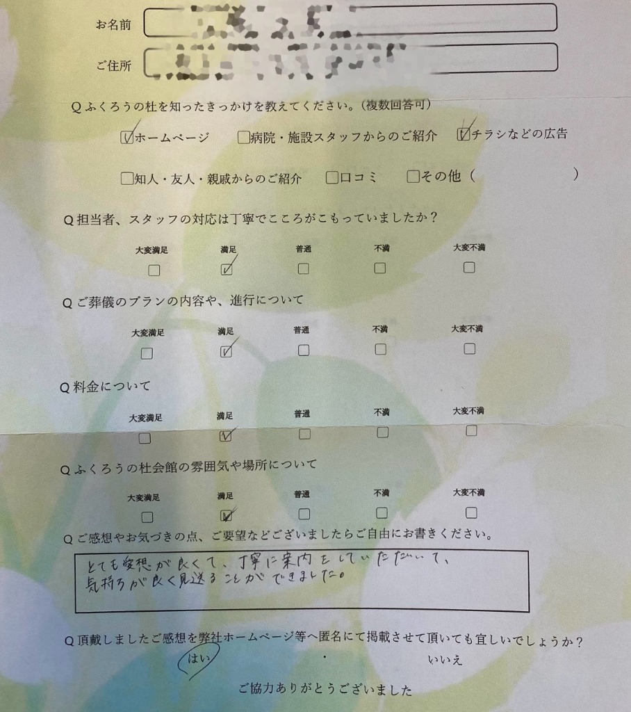 お客様の声(桑名市在住 ご利用式場:ふくろうの杜)