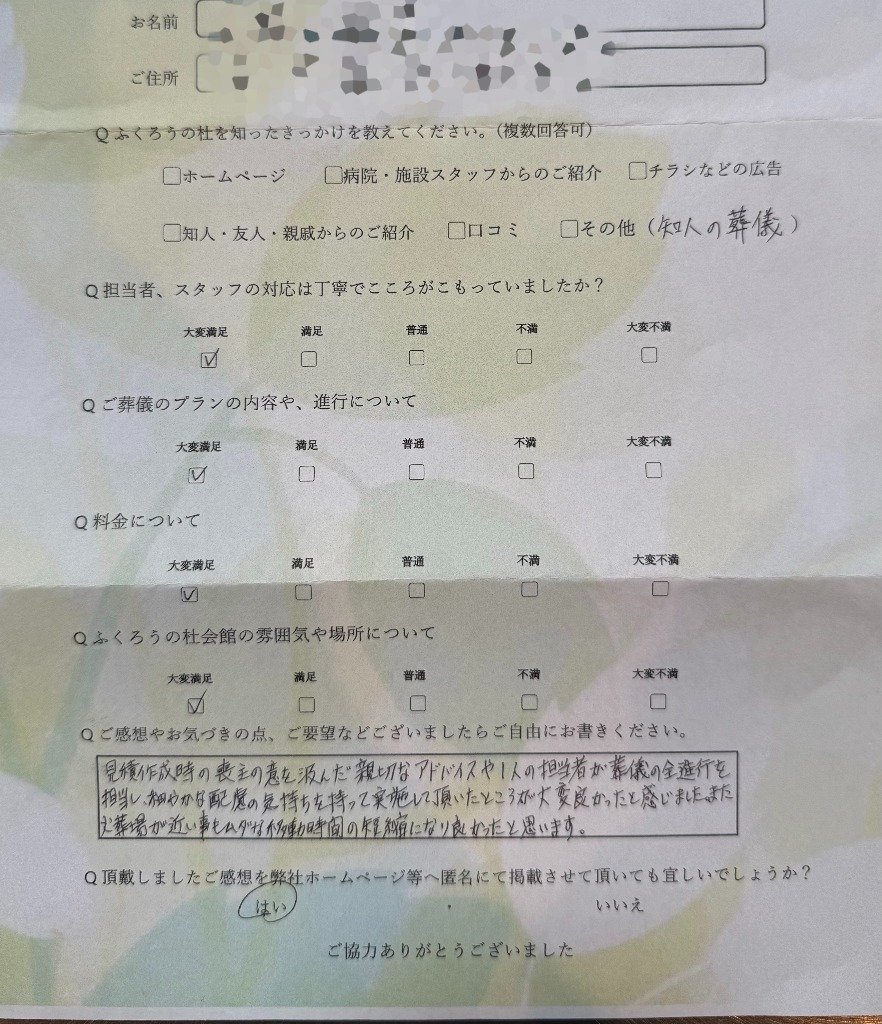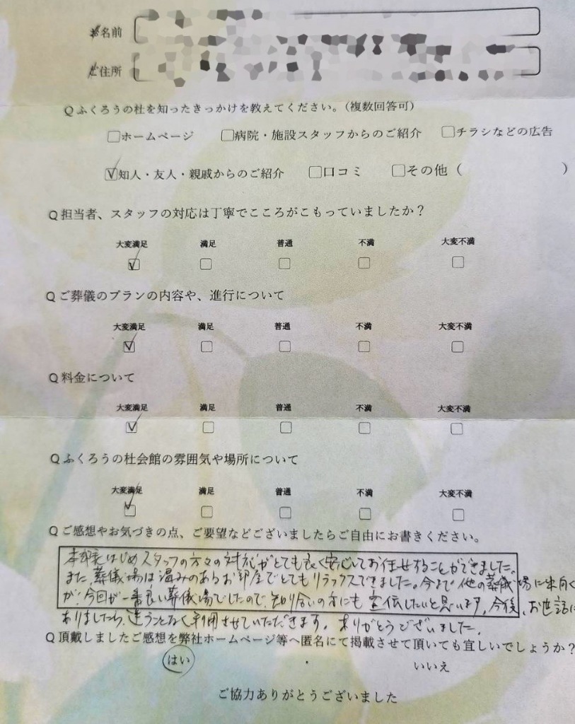 お客様の声(桑名市在住 ご利用式場:ふくろうの杜)