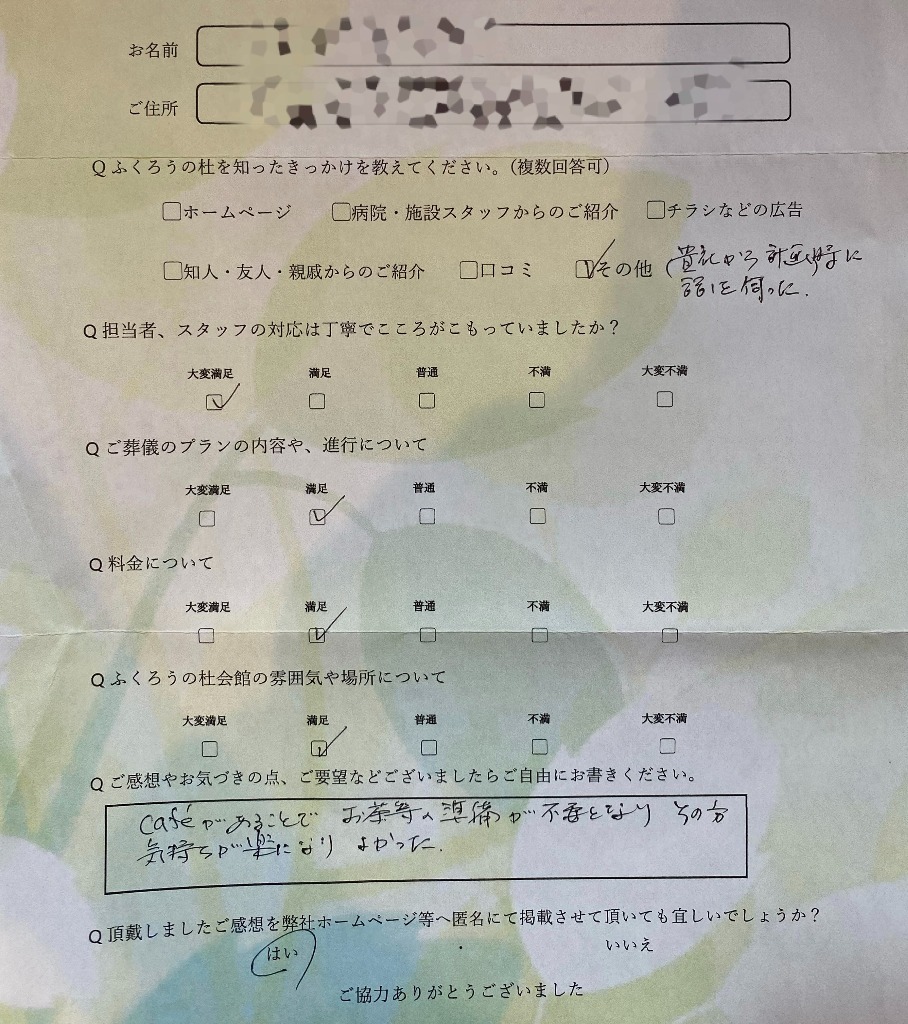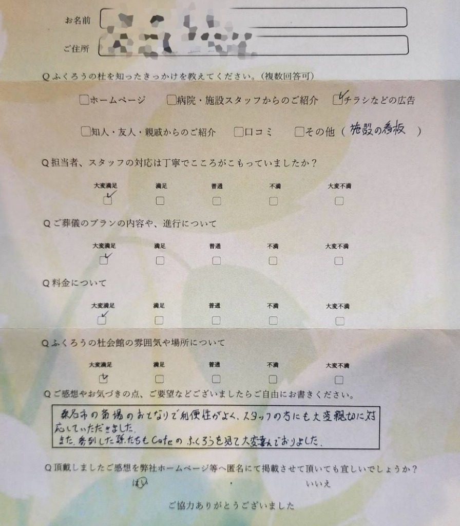 お客様の声(桑名市在住 ご利用式場:ふくろうの杜)